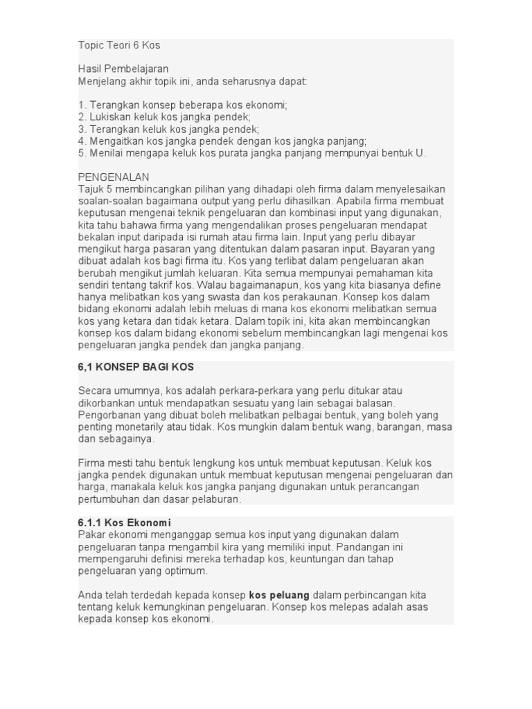 Jangka jangkamas masaa panjan panjang g adalah adalah masa masa di mana mana semua semua input input boleh boleh dikemb dikembang angkan. Ii hubungan ac, avc dan afc kos ac avc c b afc output afc sentiasa menurun apabila q bertambah tetapi sentiasa positif. Kos yang dibayar ke atas faktor pengeluaran yang pendek. Mereka dikaitkan dengan keengganan untuk mengeluarkan produk alternatif. Sac = shorterm average cos (kos purata jangka pendek).