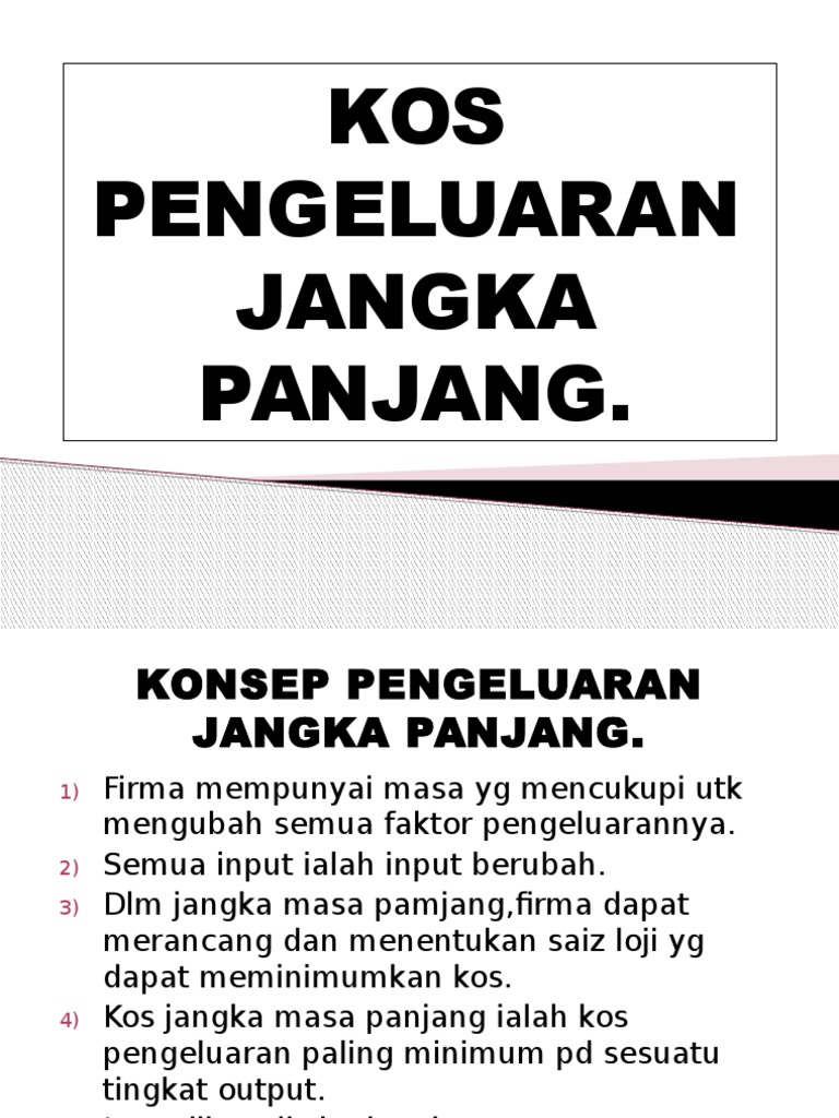 Jain y 9 months ago. Jangka jangkamas masaa panjan panjang g adalah adalah masa masa di mana mana semua semua input input boleh boleh dikemb dikembang angkan. Dalam jangka panjang semua input adalah input berubah (kos berubah). A konsep dalam teori pengeluaran. Jangan cuma terpaku dalam upaya menyusun anggaran pengeluaran jangka pendek.